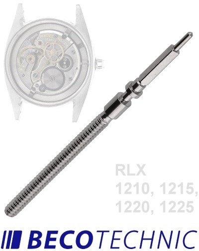 Tija de remontuar para movimiento RLX calibre 1210, 1215, 1220, 1225. El tija es una pieza de reloj muy fina, lo que también se aplica a los relojes de la más alta calidad. Si el tija de remontuar de su reloj Rolex está defectuoso o roto, este tija le ayudará a repararlo rápidamente. Los repuestos para relojes de la empresa alemana Beco Technic son de la mejor calidad.